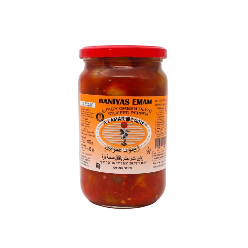 • زيتون اخضر محشو بالفلفل بصلصة حارة