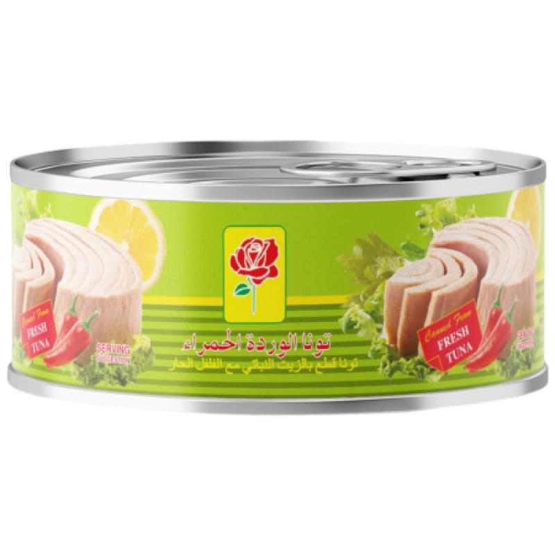 • تونة الوردة الحمراء بالزيت النباتي والفلفل الحار 100 غم*3