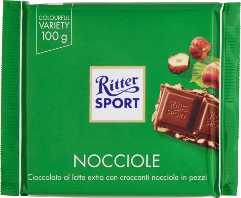 • ريتر سبورت شوكولاتة بالحليب مع قطع البندق 100 غم