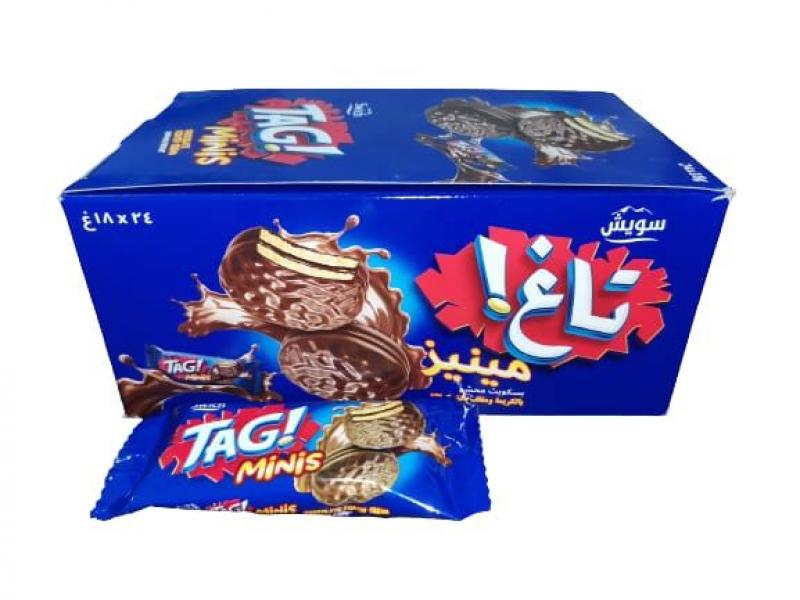 • حبة بسكوت سويتش تاغ ميني محشي ومغلف شوكولاته 18 غم 12*24